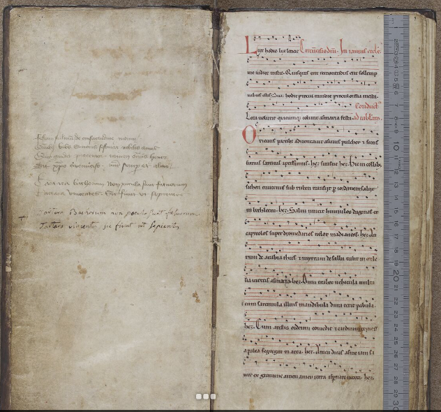 You may notice that there are many verses. Sometimes the notes must be subdivided in order to fit all the words into the verse pattern. The transcription with all the verses is somewhat speculative in terms of how the words are distributed. In general I have tried to put the words where they fall when singing the piece, but you may do it differently.